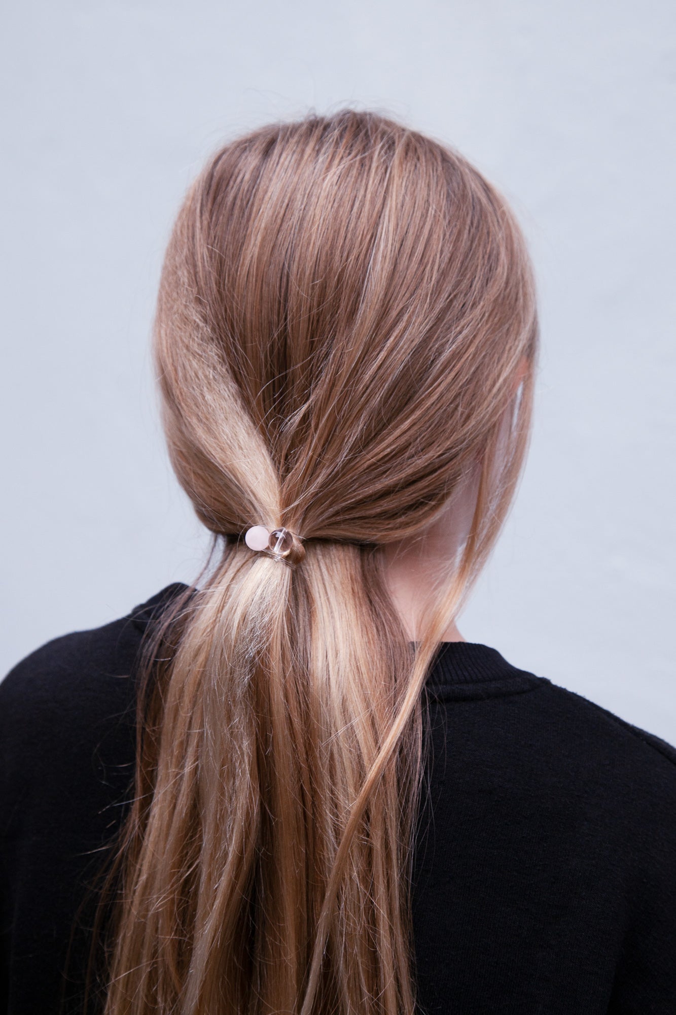 Adorned with a Rock Crystal and a frosted Rose Quartz semi-precious gemstone bead, CLINQ's floating hair tie BLUSH is an elegant, unusual hair tie that floats effortlessly on the hair thanks to the sleek, transparent jewelry elastic, combining style with sophistication. This is BLUSH
